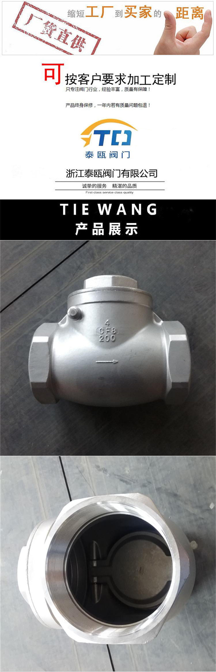 专业技术、专业制造、专业服务,浙江泰瓯有限公司致力于满足用户的期望,不断提升服务质量,精益求精,“真诚的服务”是泰瓯永恒的主题。公司严格按照 ISO9001-2000 质量体系认证要求,质量严格把关,责任到人,确保生产、销售、服务的健康运行。加强与用户沟通,竭诚为广大客户提供优质产品,至善至美服务。特此我公司做出如下承诺: